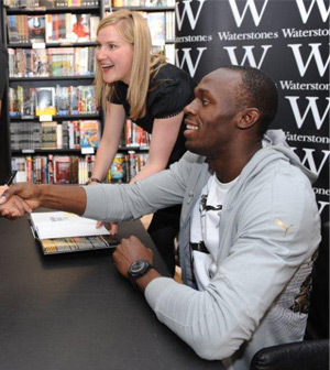 Our exclusive signing with @UBolt @WaterstonesLeics is now underway, RT for a chance to win a signed copy! #waterstonesevents